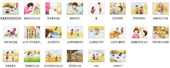 황순원의 소설 '소나기'를 예쁜 수채화 그림으로 그려놨습니다. 삽화나 내용 이해 자료로 활용할 수 있을 것 같습니다.