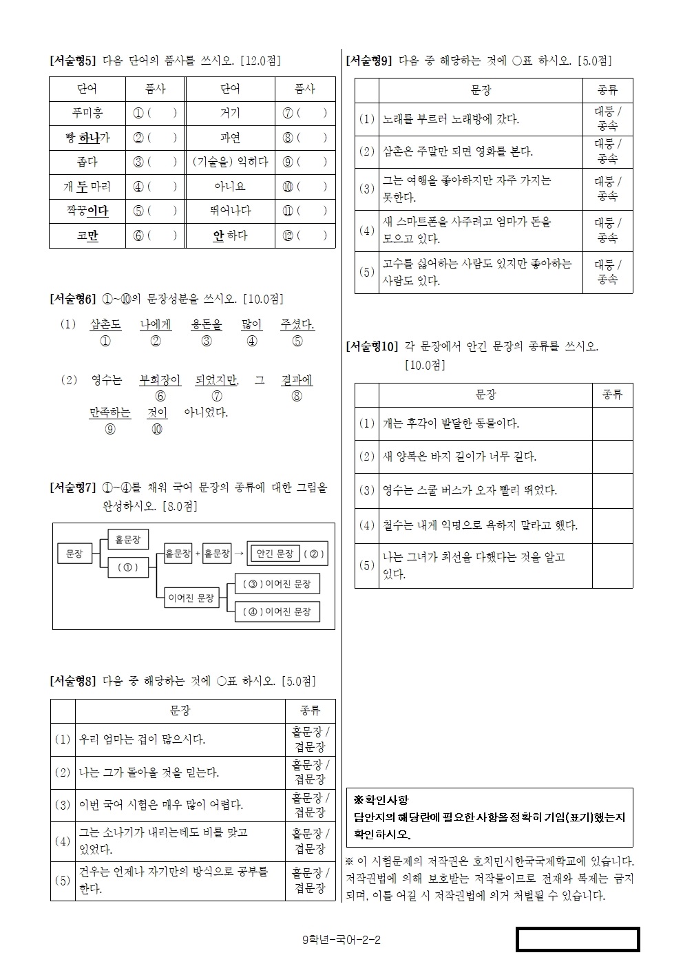 지필 고사에는 형성 평가에서 다룬 문제들을 단답형으로 작성하게 출제했습니다.