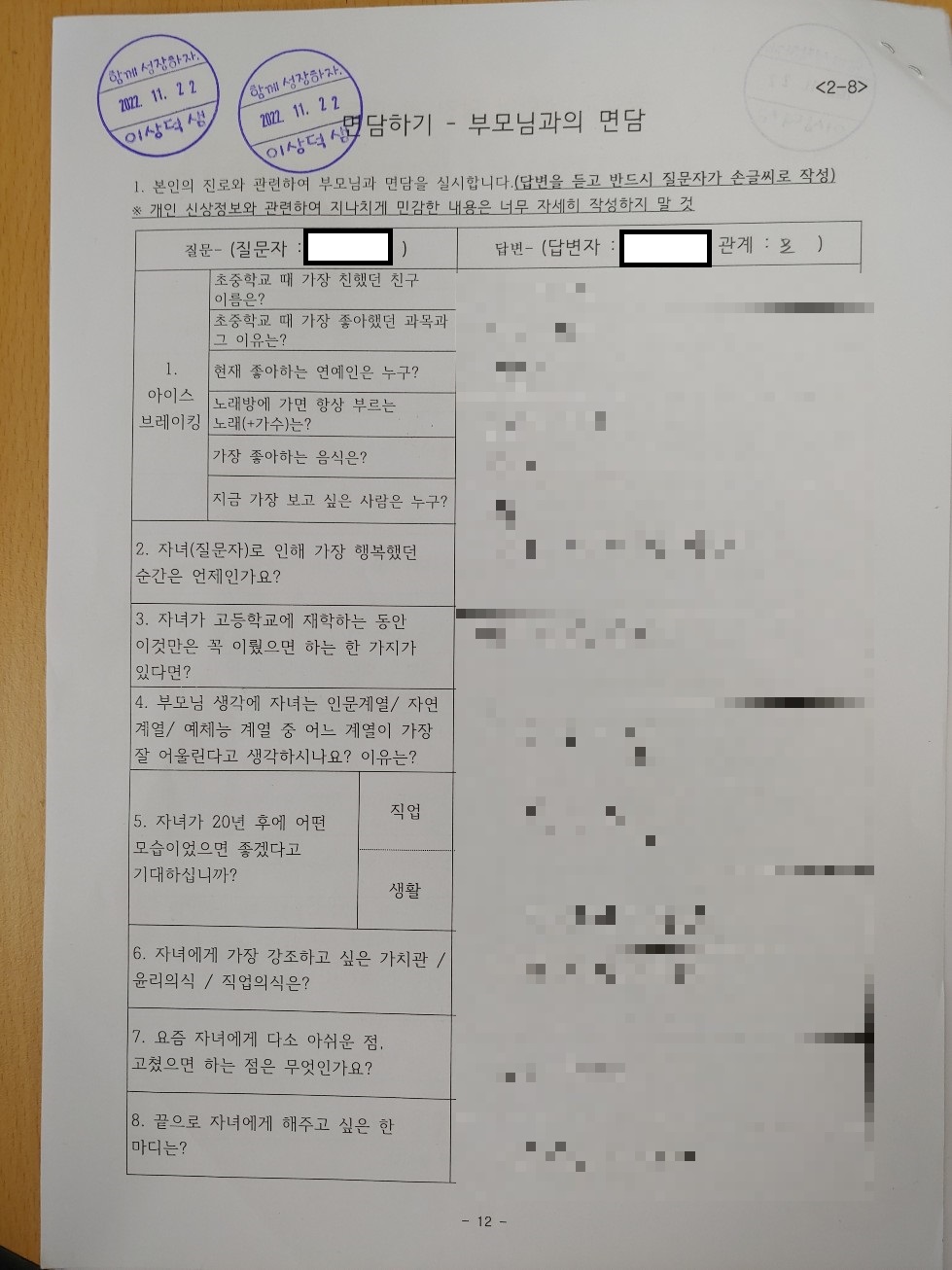 이후 수업 시간에 자소서를 직접 2부 쓰게 하고 하나는 전형 자료로 학교에 제출, 하나는 평가하여 학생들에게 돌려줬다.
