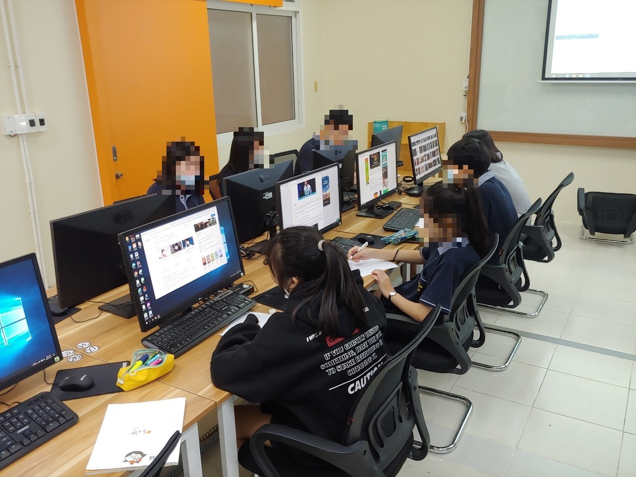 우선 개요표 작성을 위해 학교 컴퓨터실을 빌려 학생들 스스로 자료를 모으도록 했습니다.