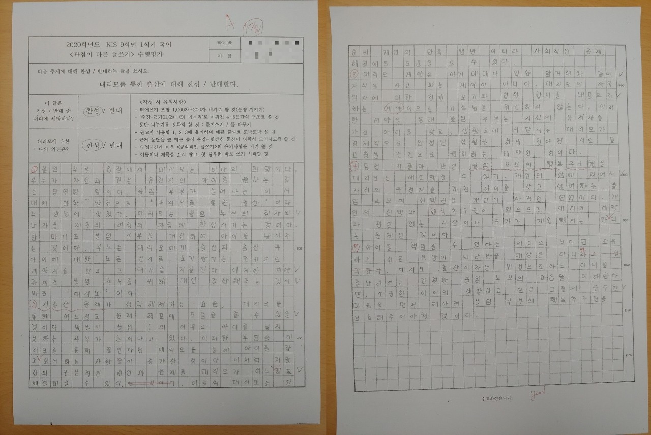 논쟁적인 주제를 주고, 찬성의 글과 반대의 글을 모두 써보게 하는 것이 목표인데, 화제는 사회 선생님이 추천해 주신 '대리모' 문제를 다루었습니다.