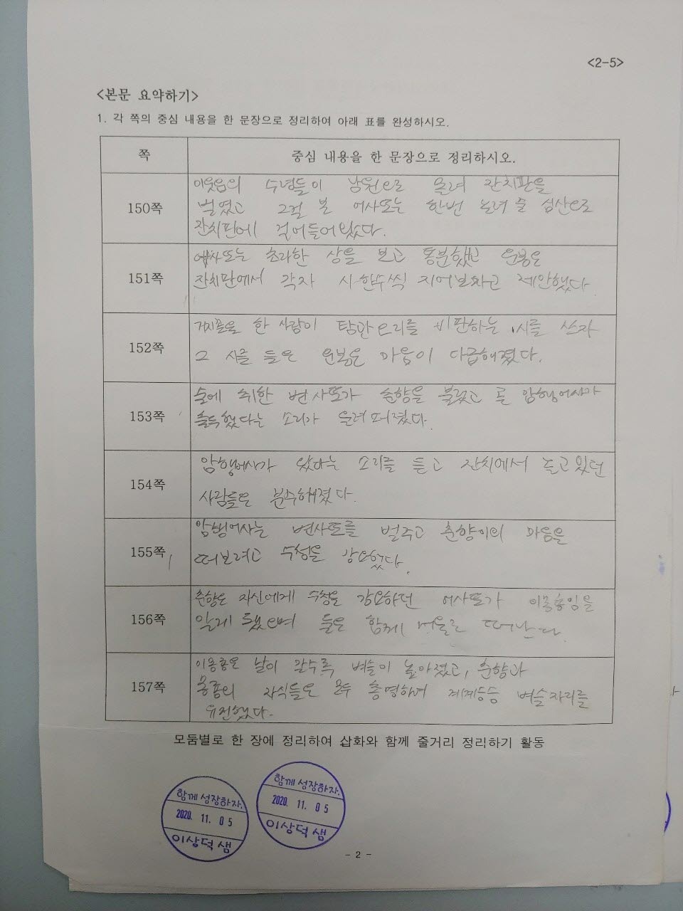 1. <춘향전> 교과서 부분 읽고 내용 파악하기 - 요약 활동