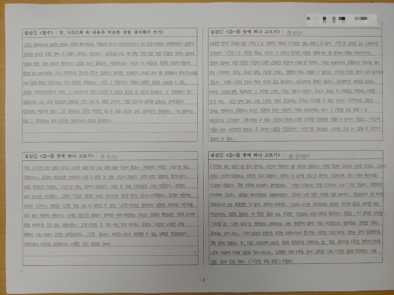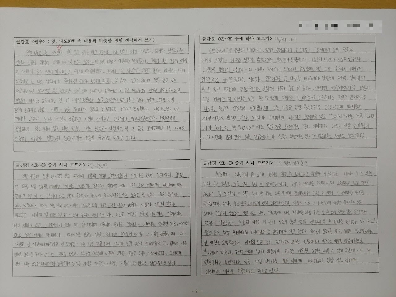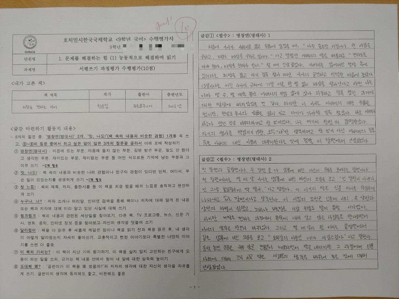 그 후 수업시간에 책을 읽고, 그 과정을 기록하는 평가(10점)와 독서 내용을 바탕으로 질문에 답하는 평가(10점)로 나눠서 진행했습니다. 한국에서는 컴퓨터실에 데려가 워드로 작성하는 단계까지 진행했으나 이곳에서는 워드 작업을 하기에 어려운 현지 사정이 있어서 워드로 완성하는 것은 학생들 선택에 맡겼습니다.