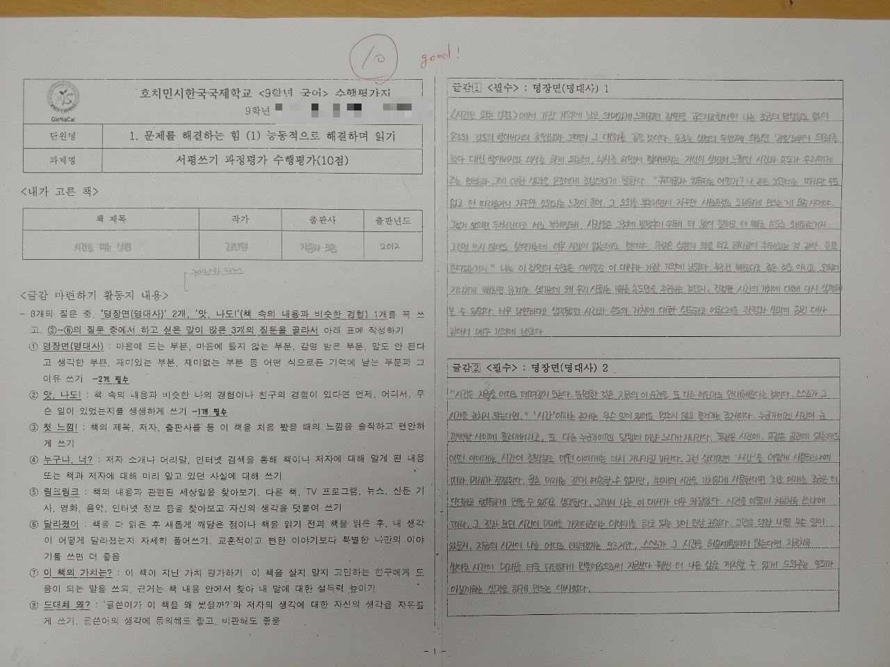 서평쓰기 과정평가 수행평가.hwp
